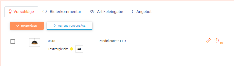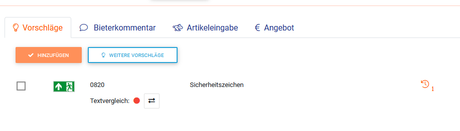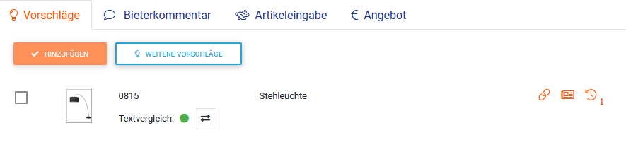 Bei der Zuordnung von Artikeln zu verschiedenen Positionen gibt es die Möglichkeit der Texterkennung. Dabei werden Angaben der Position zu Artikeln verglichen und je Treffergenauigkeit wird Ihnen über die Ampelfarben angezeigt, wie gut der Artikel auf die ausgeschriebene Position passt.