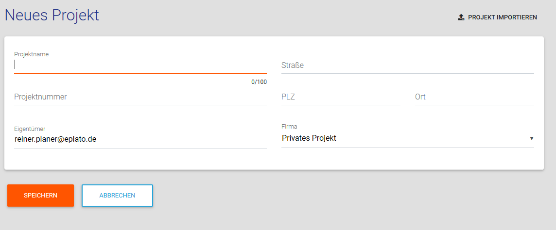 Neues Projekt anlegen